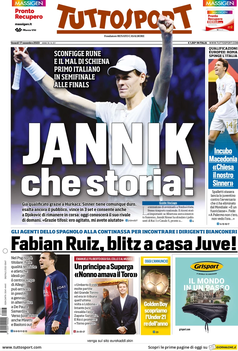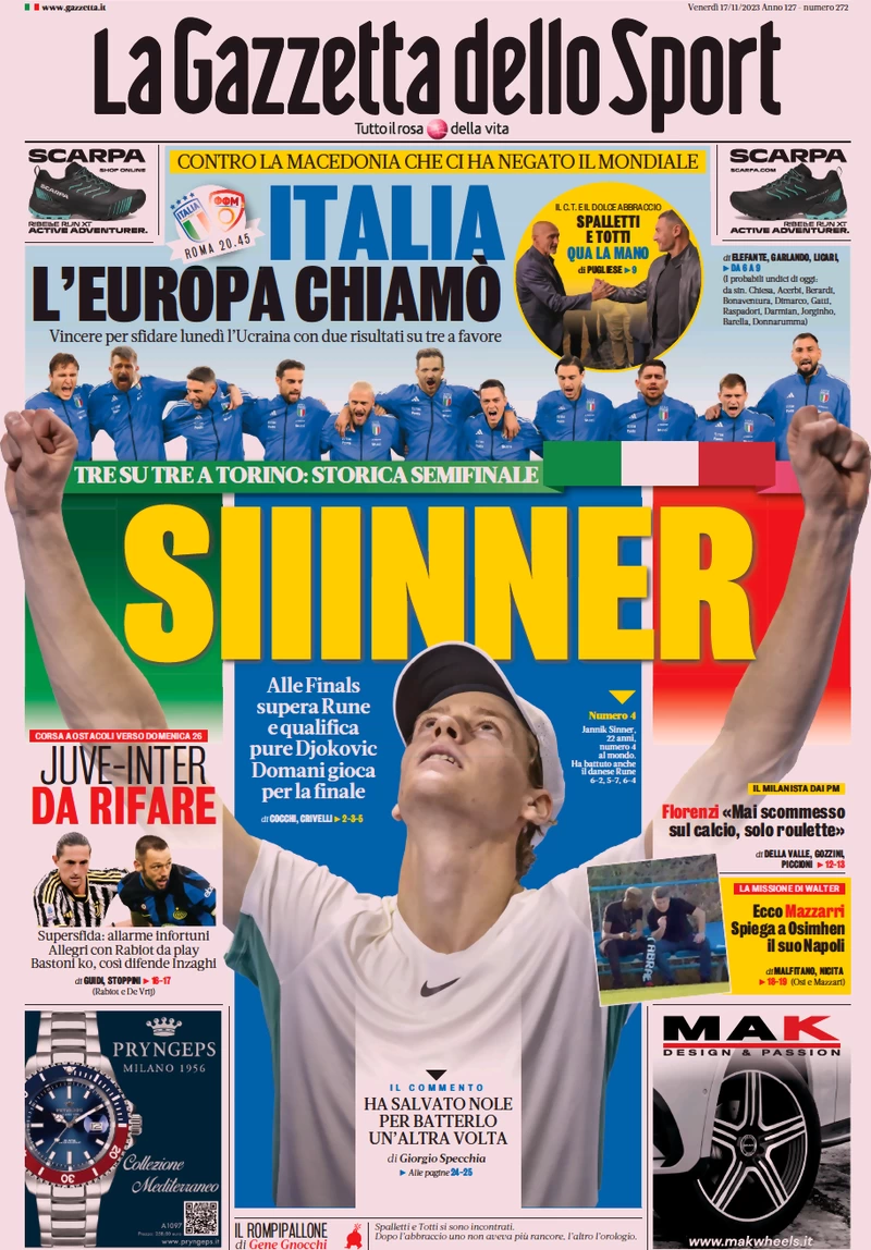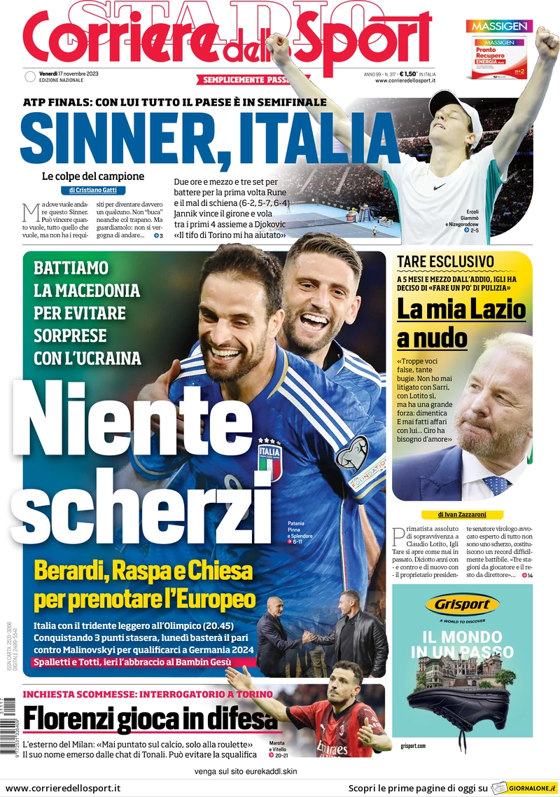 PRIME PAGINE QUOTIDIANI INTER - Di seguito i titoli di oggi sull'Inter e le prime pagine dei maggiori quotidiani sportivi in edicola in data 17 novembre.