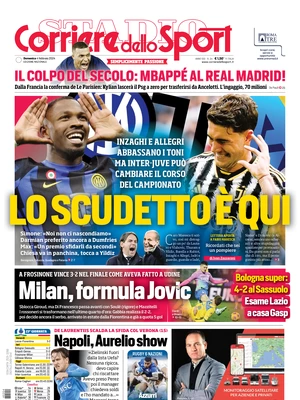 PRIME PAGINE QUOTIDIANI INTER - Di seguito i titoli di oggi sull'Inter e le prime pagine dei maggiori quotidiani sportivi in edicola in data 4 febbraio.