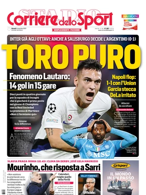 INTER PRIME PAGINE QUOTIDIANI SPORTIVI OGGI 9 NOVEMBRE - Di seguito vi riportiamo le prime pagine dei principali quotidiani sportivi di oggi, giovedì 9 novembre 2023.