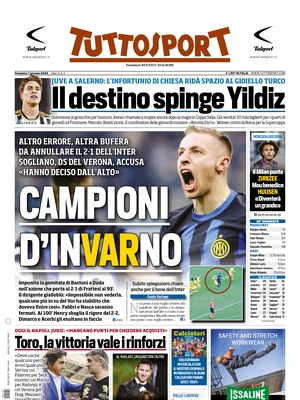 INTER PRIME PAGINE QUOTIDIANI SPORTIVI OGGI 7 GENNAIO - Di seguito vi riportiamo le prime pagine dei principali quotidiani sportivi di oggi, domenica 7 gennaio 2024.