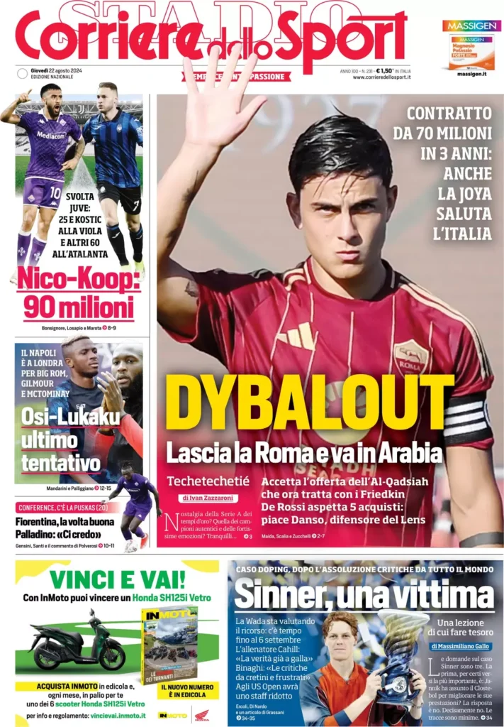 Milan, le prime pagine dei quotidiani sportivi oggi - 22 agosto 2024