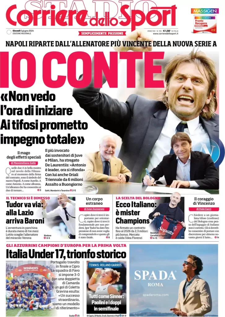 PRIME PAGINE QUOTIDIANI MILAN - Di seguito le prime pagine dei maggiori quotidiani sportivi di oggi, giovedì 6 giugno 2024.