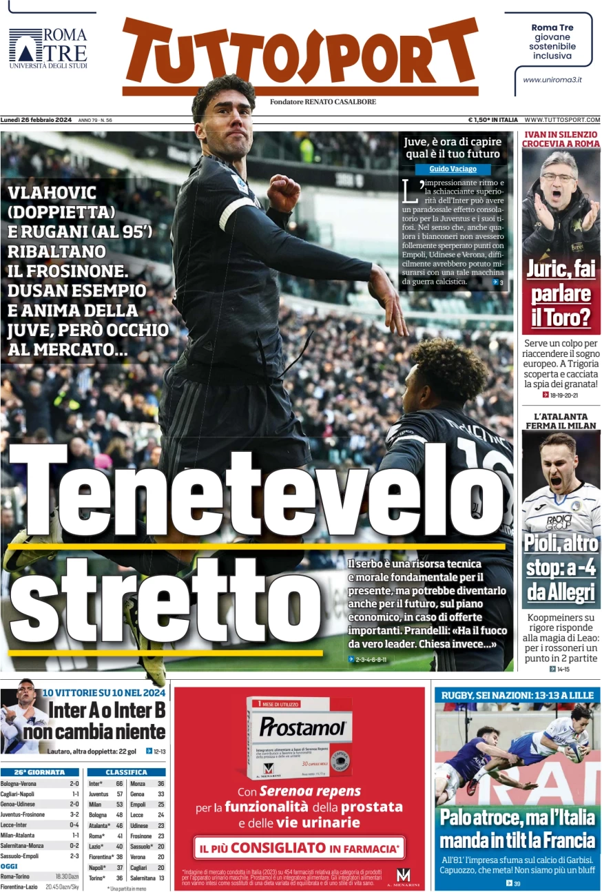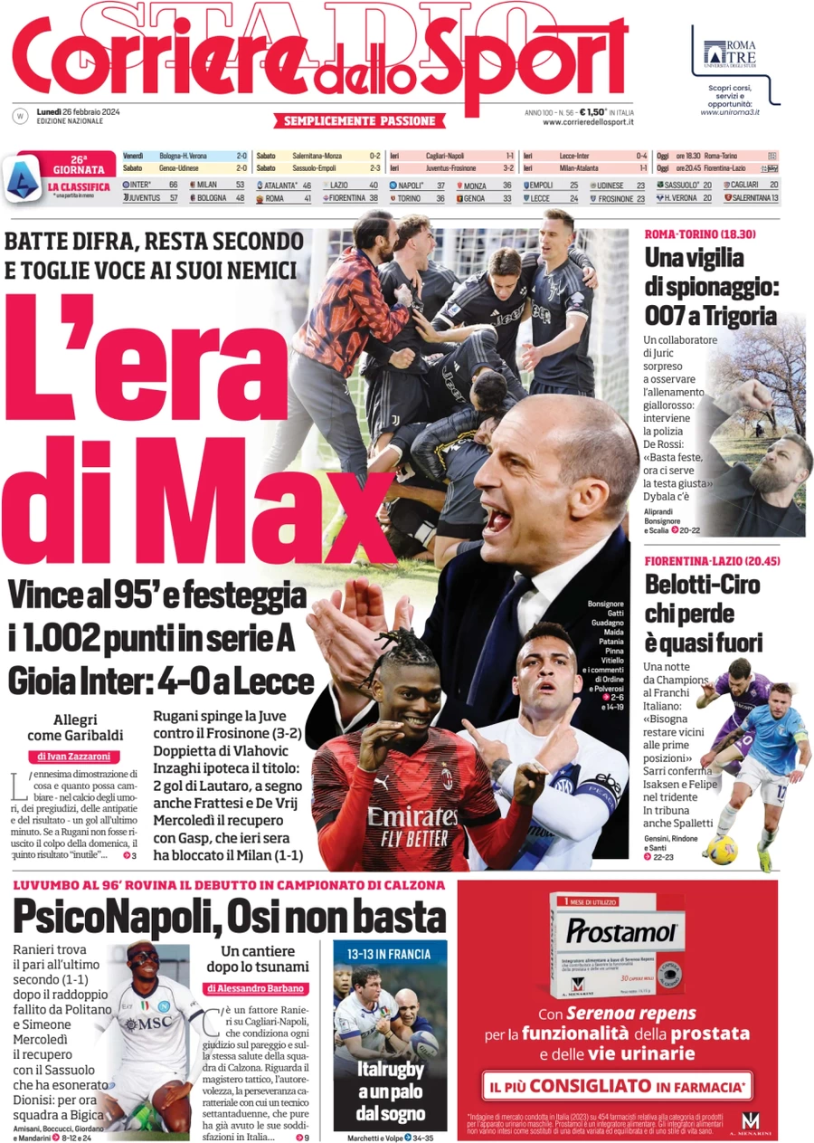 INTER PRIME PAGINE QUOTIDIANI SPORTIVI OGGI 26 FEBBRAIO - Di seguito vi riportiamo le prime pagine dei principali quotidiani sportivi di oggi, lunedì 26 febbraio 2024.