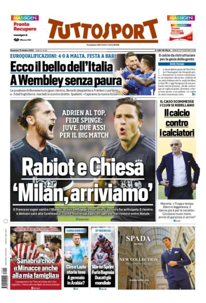 INTER PRIME PAGINE QUOTIDIANI SPORTIVI - Oggi 15 ottobre 2015, di seguito i titoli riguardanti l'Inter e le prime pagine dei maggiori quotidiani sportivi in edicola oggi.