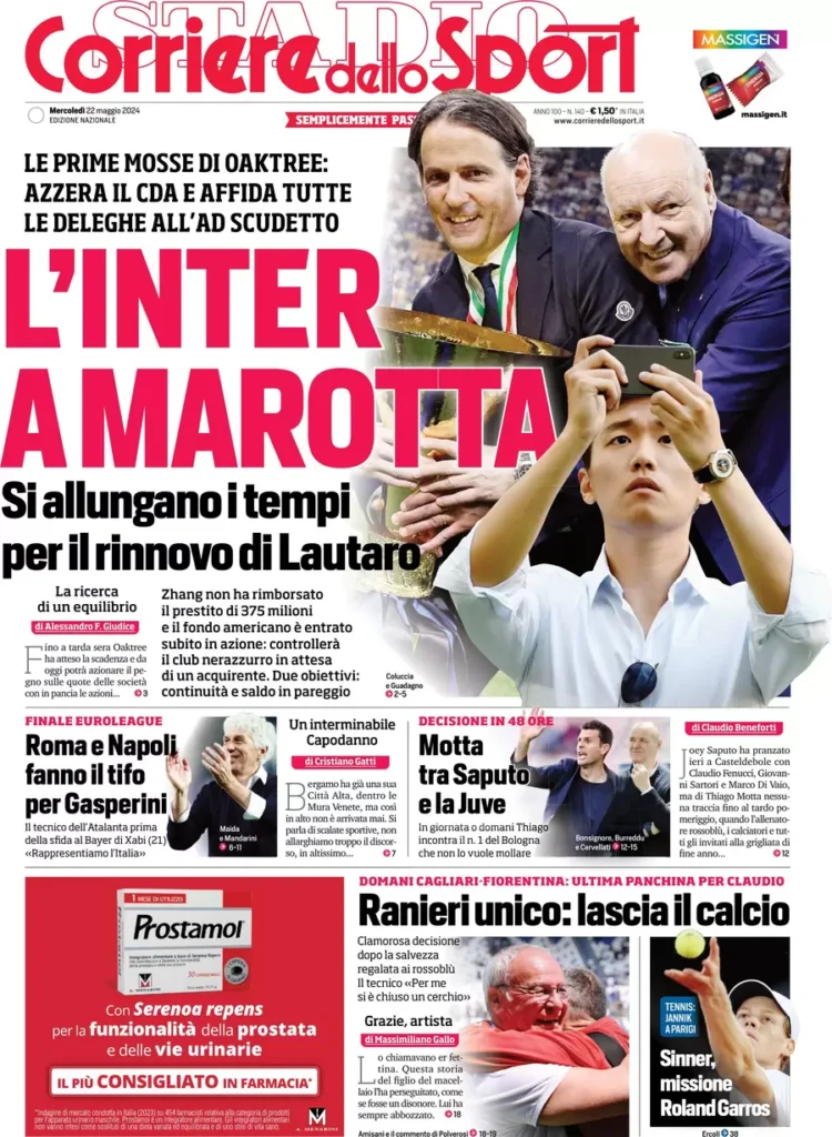 PRIME PAGINE QUOTIDIANI INTER - Di seguito i titoli di oggi sull'Inter e le prime pagine dei maggiori quotidiani sportivi di oggi, mercoledì 22 maggio 2024.