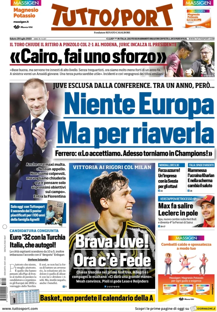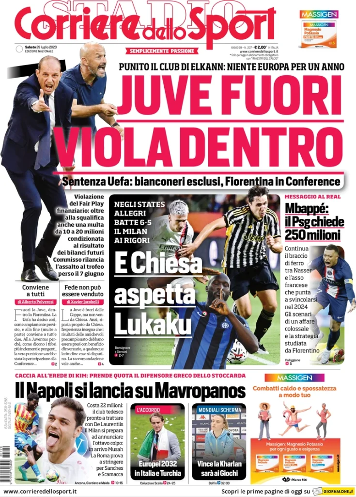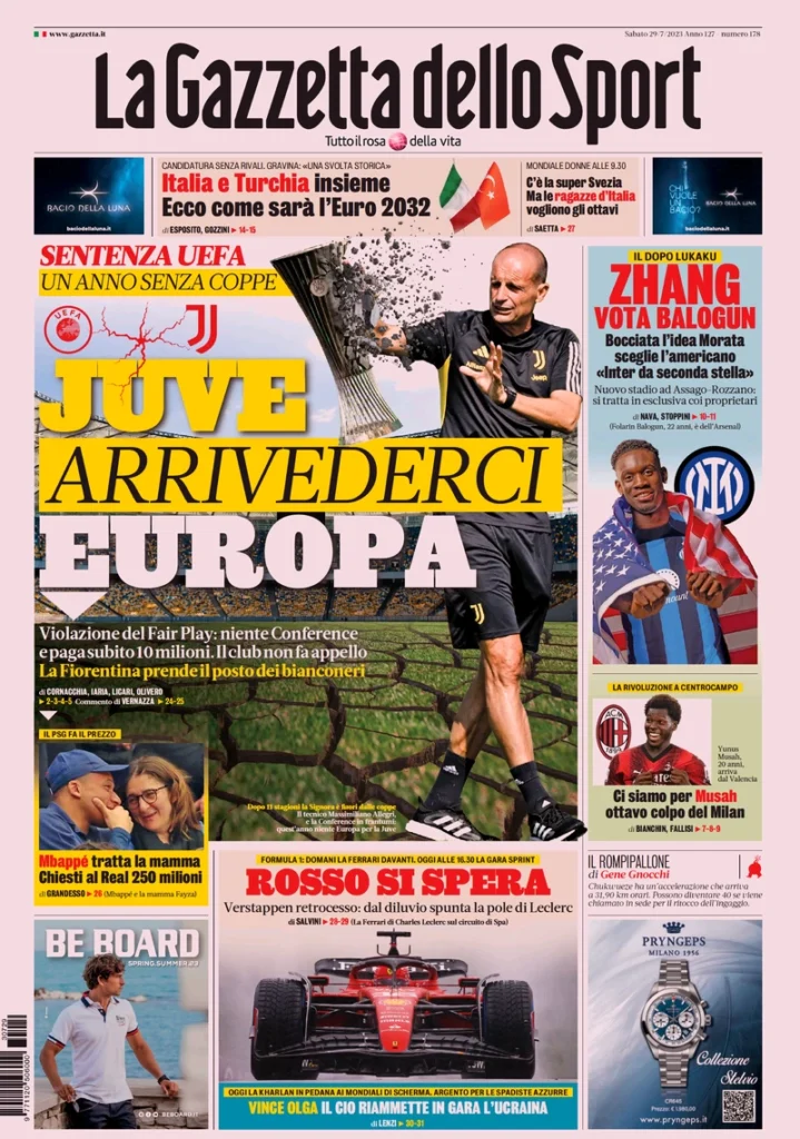 PRIME PAGINE QUOTIDIANI SPORTIVI OGGI 29 LUGLIO - Sabato 29 luglio. Di seguito le prime pagine dei principali quotidiani sportivi nazionali oggi in edicola con i titoli sull'Inter di Simone Inzaghi.