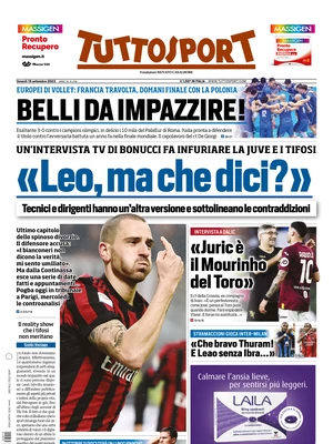 PRIME PAGINE QUOTIDIANI SPORTIVI OGGI 15 SETTEMBRE - Venerdì 15 settembre. Ecco di seguito i titoli di oggi sull'Inter e le prime pagine dei maggiori quotidiani sportivi in edicola oggi.