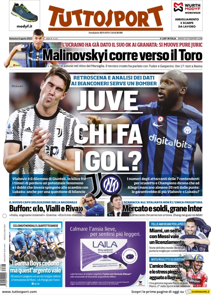 PRIME PAGINE QUOTIDIANI SPORTIVI OGGI 6 AGOSTO - Domenica 6 agosto. Di seguito le prime pagine dei principali quotidiani sportivi nazionali oggi in edicola con i titoli sull'Inter di Simone Inzaghi.