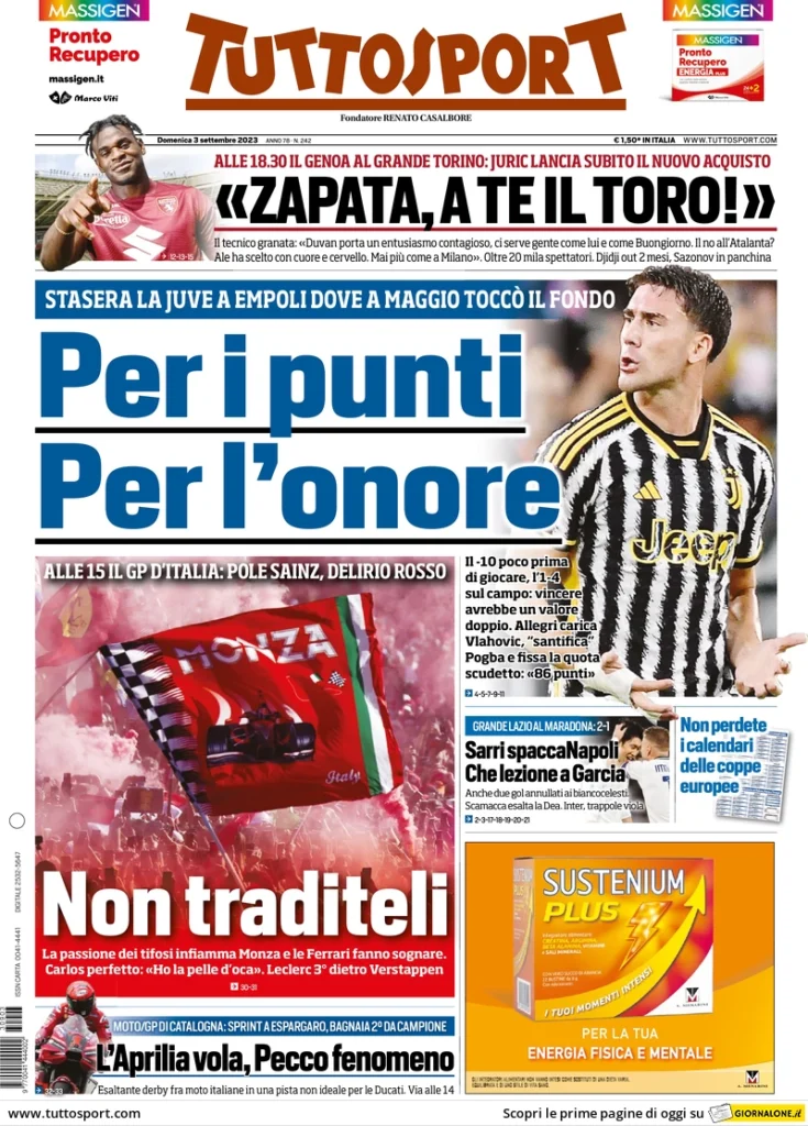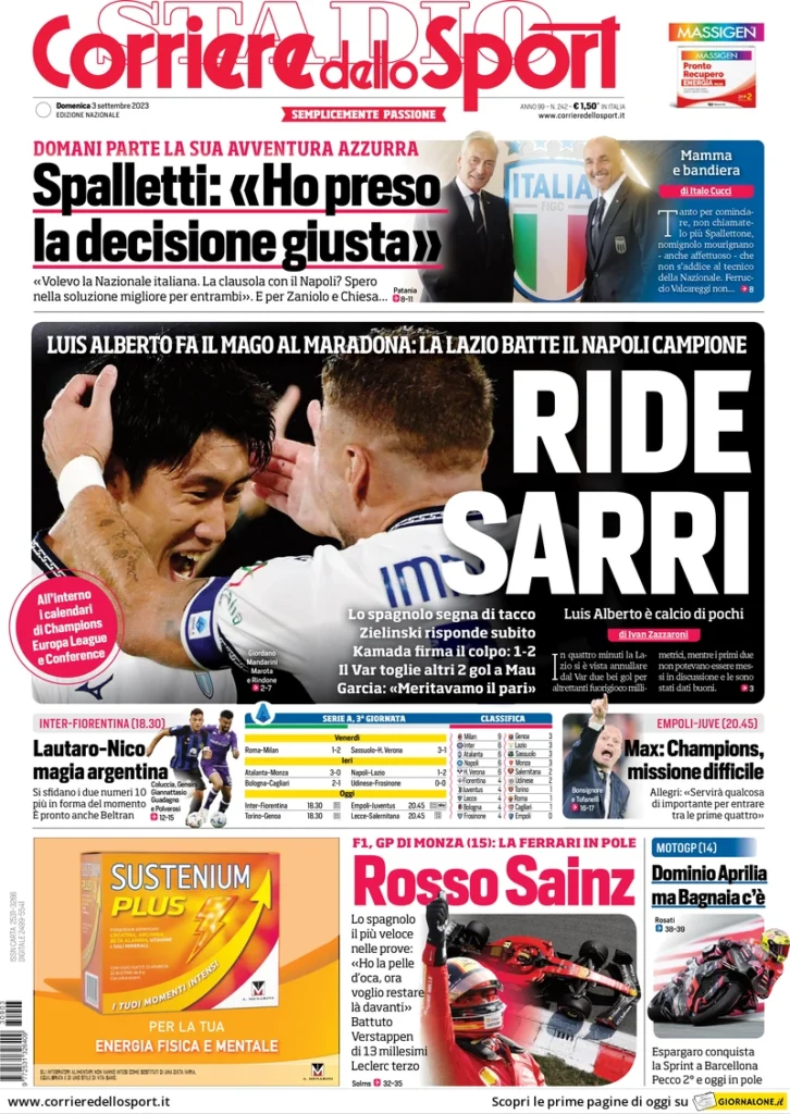 PRIME PAGINE QUOTIDIANI SPORTIVI OGGI 3 SETTEMBRE - Domenica 3 settembre. Di seguito le prime pagine dei principali quotidiani sportivi nazionali oggi in edicola con i titoli sull'Inter di Simone Inzaghi.