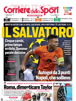 PRIME PAGINE QUOTIDIANI SPORTIVI OGGI 21 SETTEMBRE - Giovedì 21 settembre. Ecco di seguito i titoli di oggi sull'Inter e le prime pagine dei maggiori quotidiani sportivi in edicola oggi.