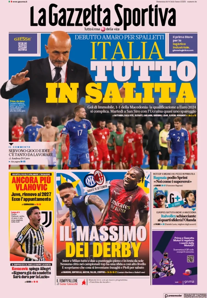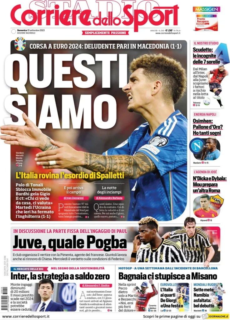PRIME PAGINE QUOTIDIANI SPORTIVI OGGI 10 SETTEMBRE - Domenica 10 settembre. Di seguito le prime pagine dei principali quotidiani sportivi nazionali oggi in edicola con i titoli sull'Inter di Simone Inzaghi.