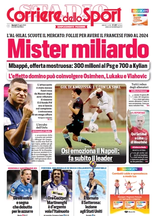 PRIME PAGINE QUOTIDIANI SPORTIVI OGGI 25 LUGLIO - Martedì 25 luglio. Ecco di seguito i titoli di oggi sull'Inter e le prime pagine dei maggiori quotidiani sportivi in edicola oggi.