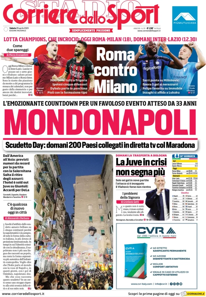 Inter, le prime pagine dei principali quotidiani sportivi - 29 aprile