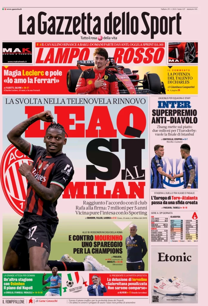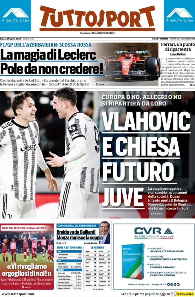PRIME PAGINE QUOTIDIANI SPORTIVI OGGI 29 APRILE - Di seguito le prime pagine dei principali quotidiani sportivi nazionali oggi in edicola, sabato 29 aprile, coi titoli sull'Inter.