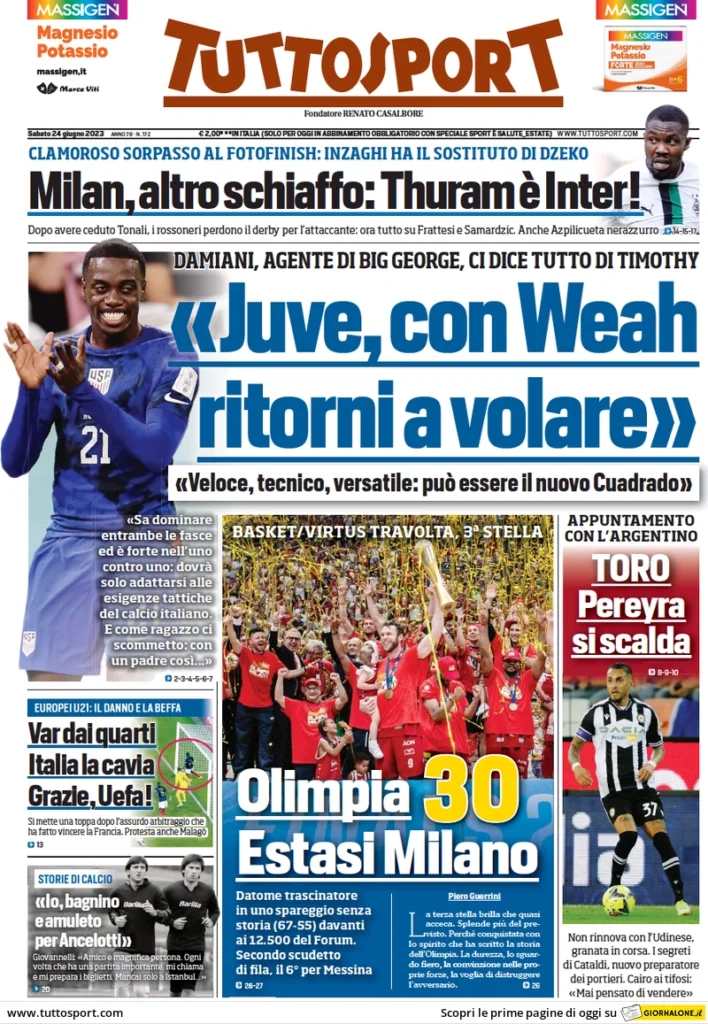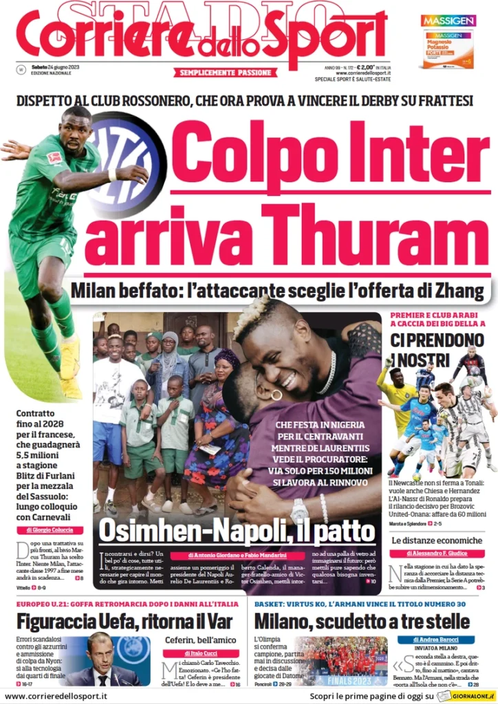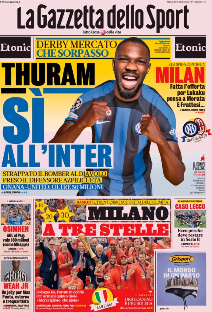 Inter, le prime pagine dei principali quotidiani sportivi - 24 giugno