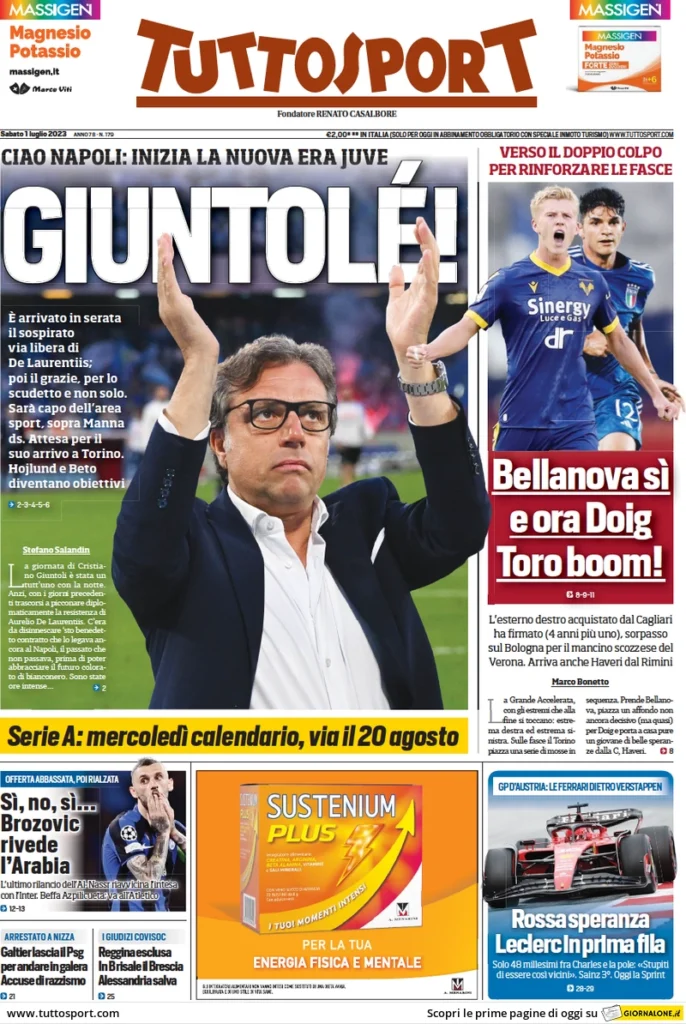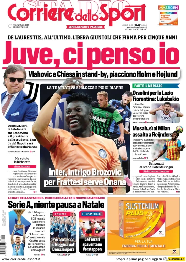 PRIME PAGINE QUOTIDIANI SPORTIVI OGGI 1 LUGLIO - Sabato 1 luglio. Di seguito le prime pagine dei principali quotidiani sportivi nazionali oggi in edicola con i titoli sull'Inter di Simone Inzaghi.