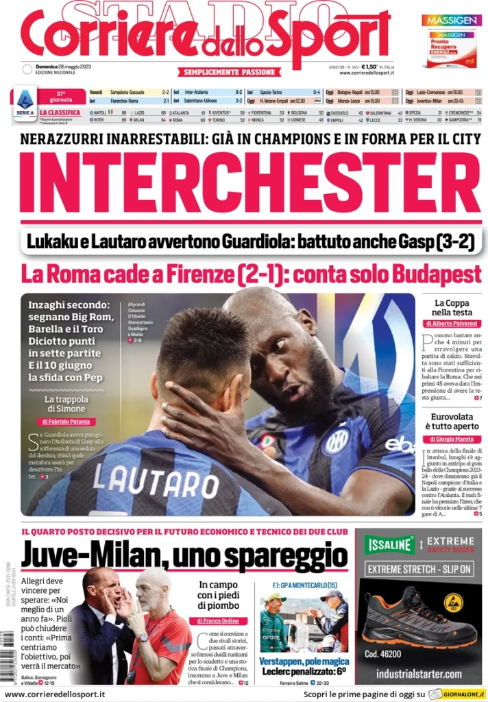 PRIME PAGINE QUOTIDIANI SPORTIVI 28 MAGGIO 2023 - Queste le prime pagine dei principali quotidiani sportivi nazionali in edicola oggi, 28 maggio 2023. I principali titoli sull'Inter riguardano la vittoria dei nerazzurri sull'Atalanta per 3-2, nella penultima giornata del campionato di Serie A.